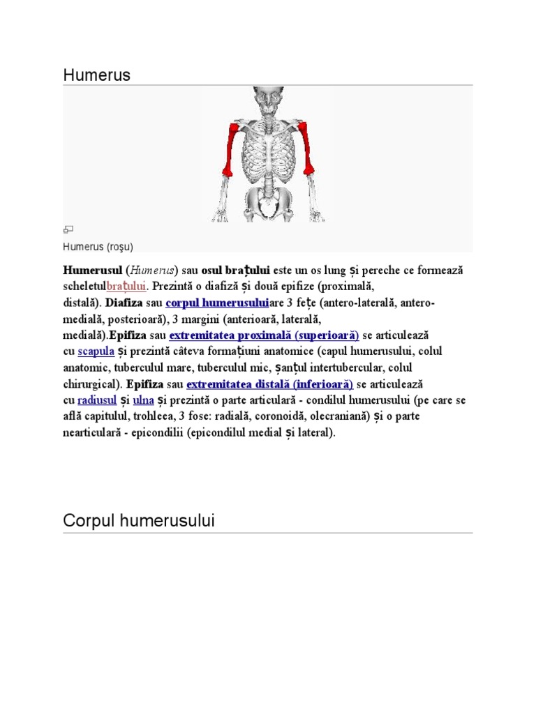 Humerusul (Humerus) sau osul braului este un os lung i pereche ce formeaz