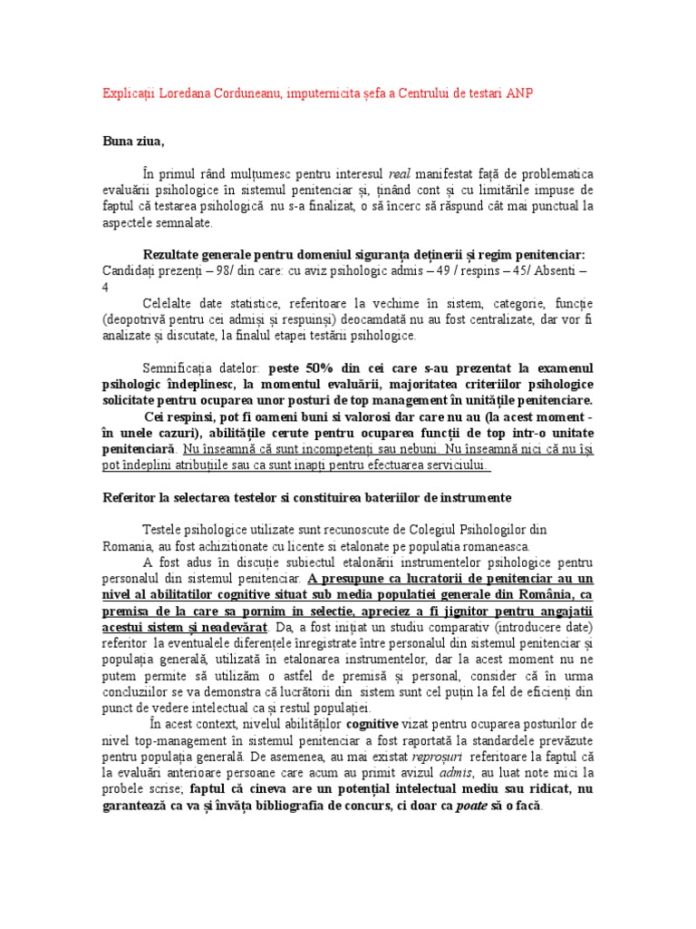 Explicaii Loredana Corduneanu, imputernicita efa a Centrului de testari ANP