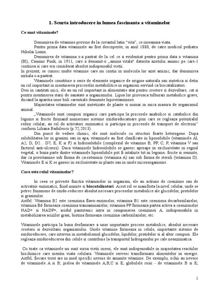 Vitaminele Si Rolul Lor