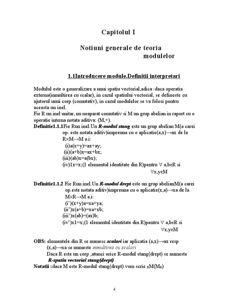 Definitie1.1.1Fie Run [Link] R-modul stang este un grup abelian M(a carei