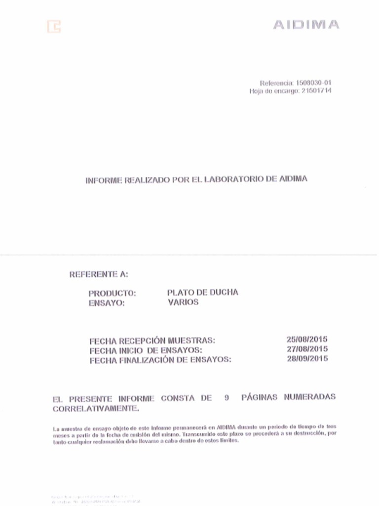 Informes de Ensayos de Platos de Ducha de resina de ASEALIA