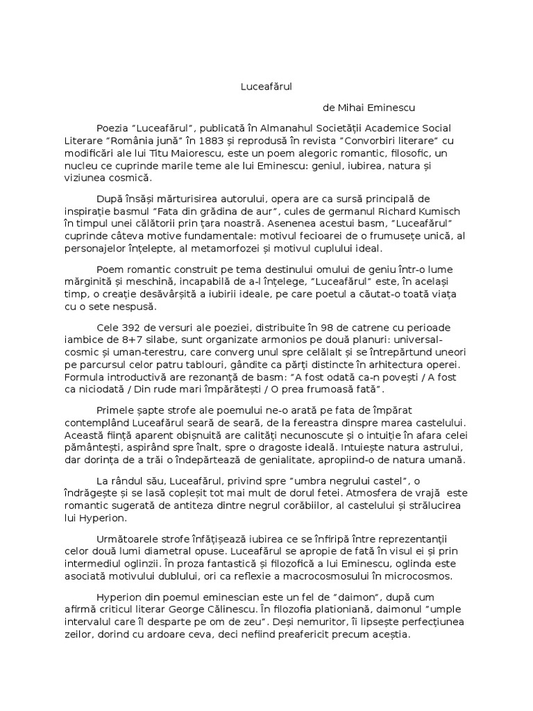 modificri ale lui Titu Maiorescu, este un poem alegoric romantic, filosofic, un