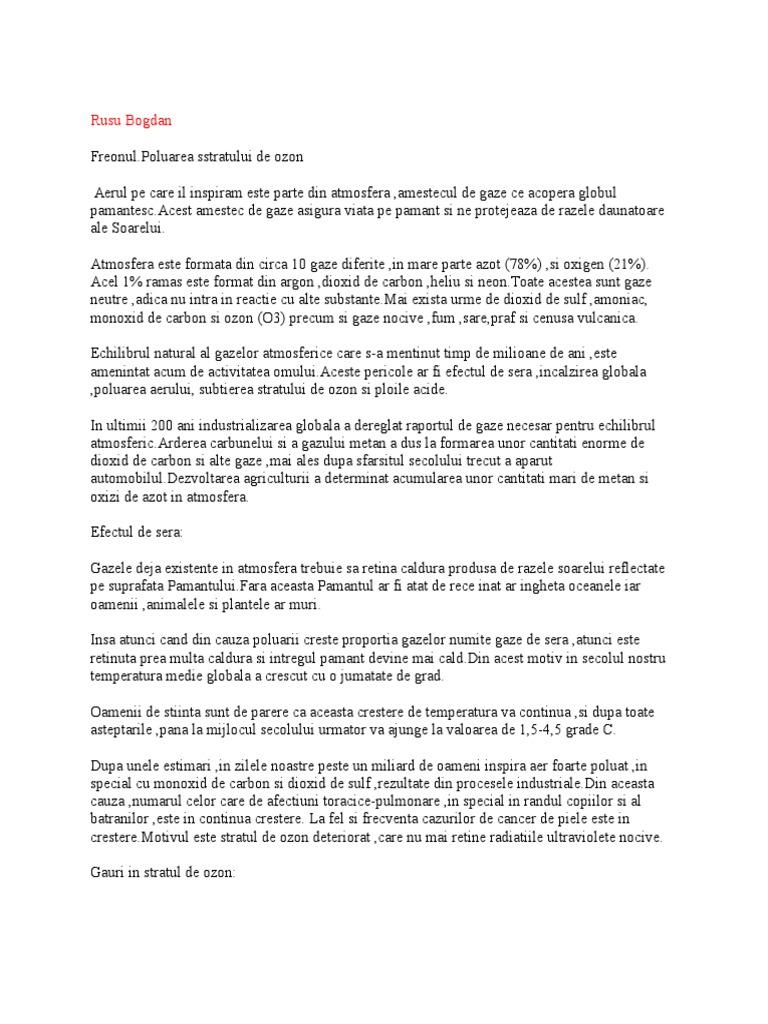 [Link] este stratul de ozon deteriorat ,care nu mai retine radiatiile ultraviolete nocive.