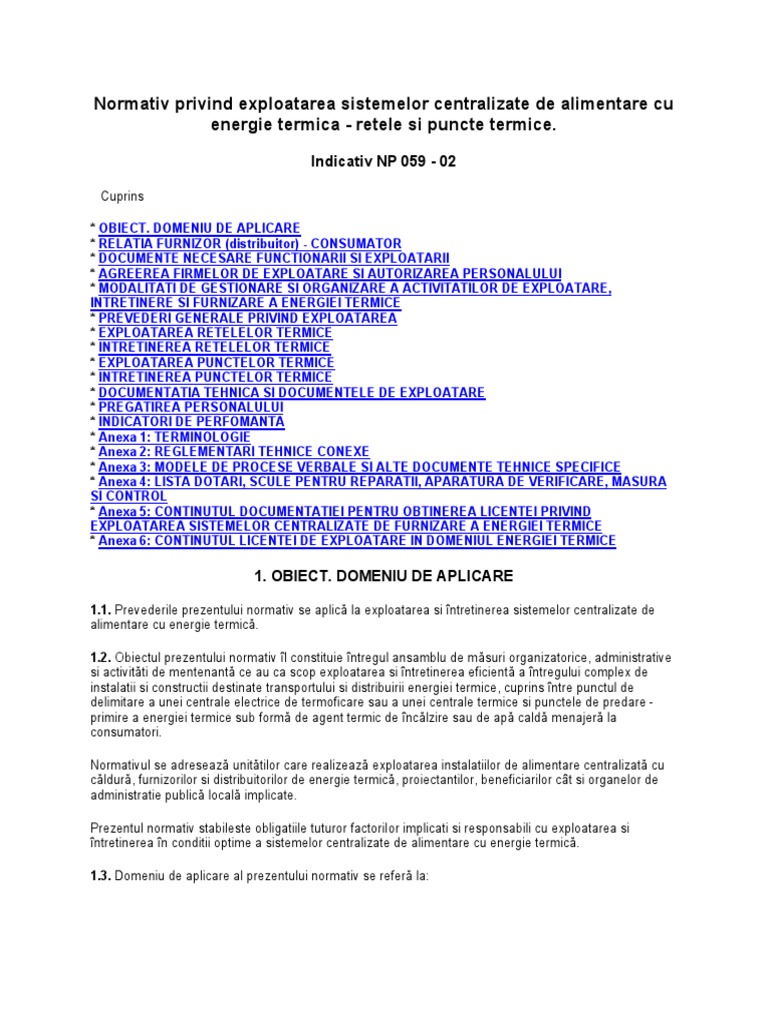 Conditiile tehnice privind furnizarea si utilizarea energiei termice
