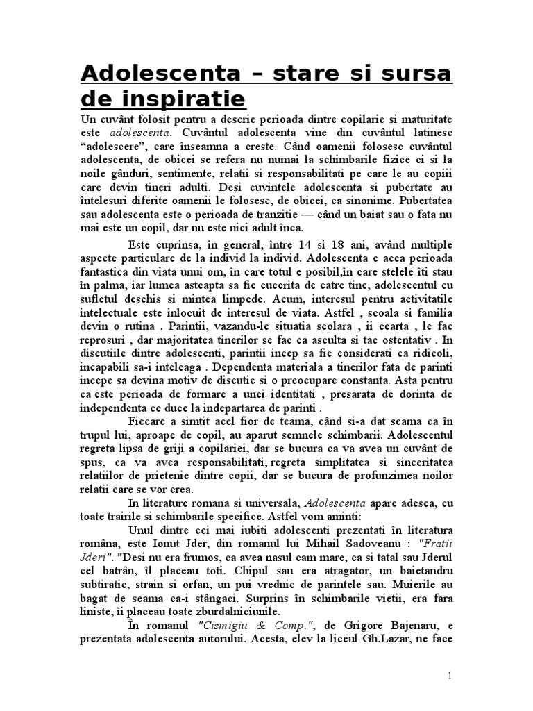 sociale care au modelat-o de-a lungul timpului. Mereu actual, tema adolescenei rmne un