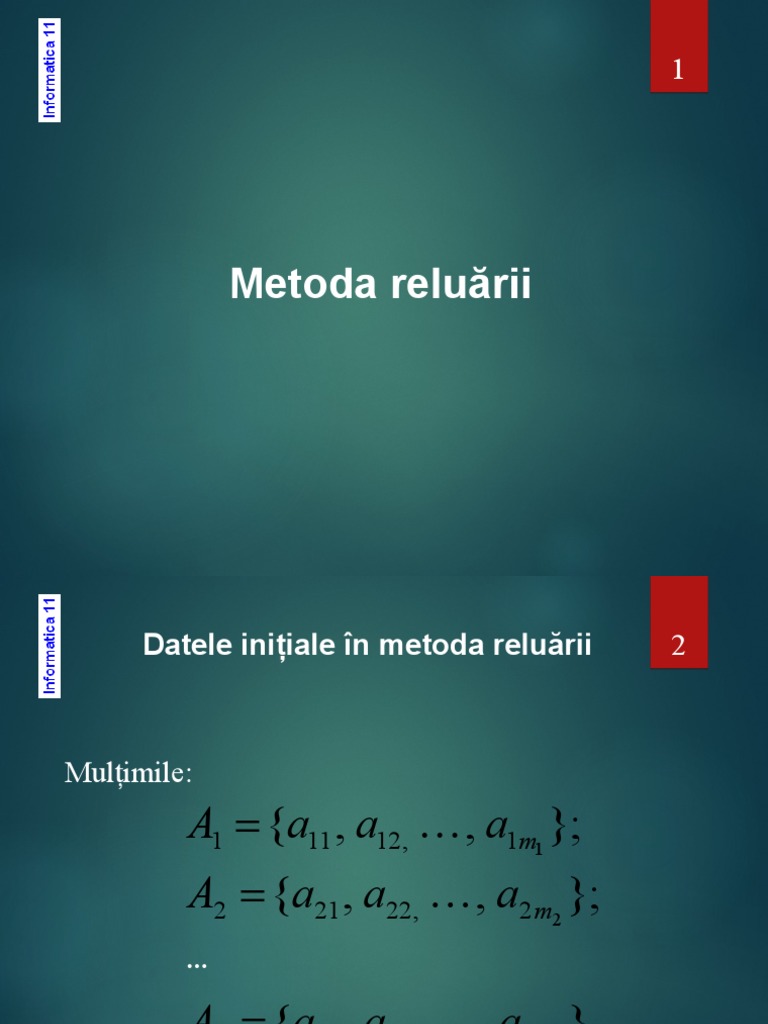 1. Mulimile A1, A2, ..., An snt cunoscute.