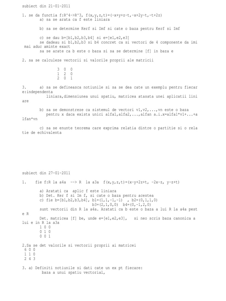 sunt vectorii din R la a4a. Aratati ca b este o baza a lui R la a4a pest
