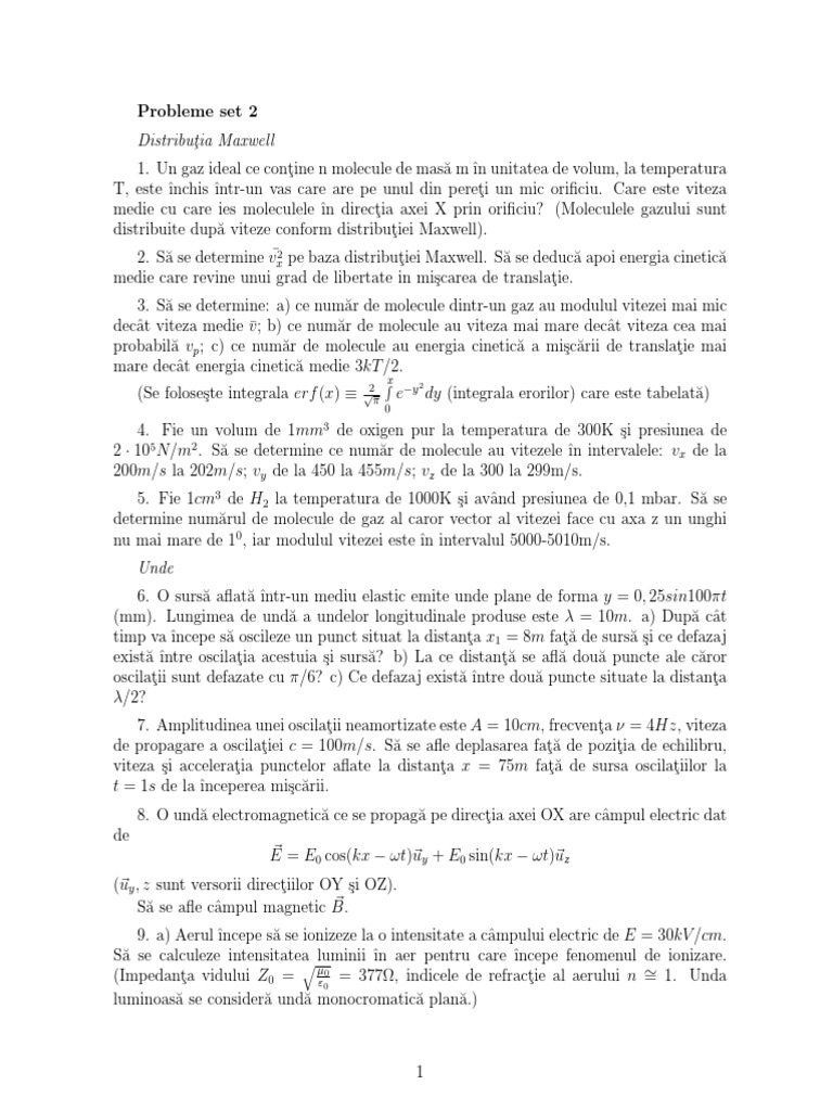 1. Un gaz ideal ce contine n molecule de masa m n unitatea de volum, la temperatura