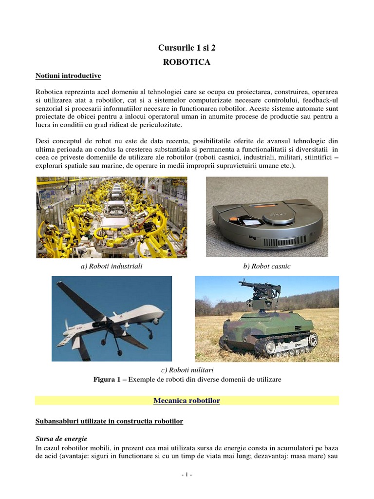 ceea ce priveste domeniile de utilizare ale robotilor (roboti casnici, industriali, militari, stiintifici