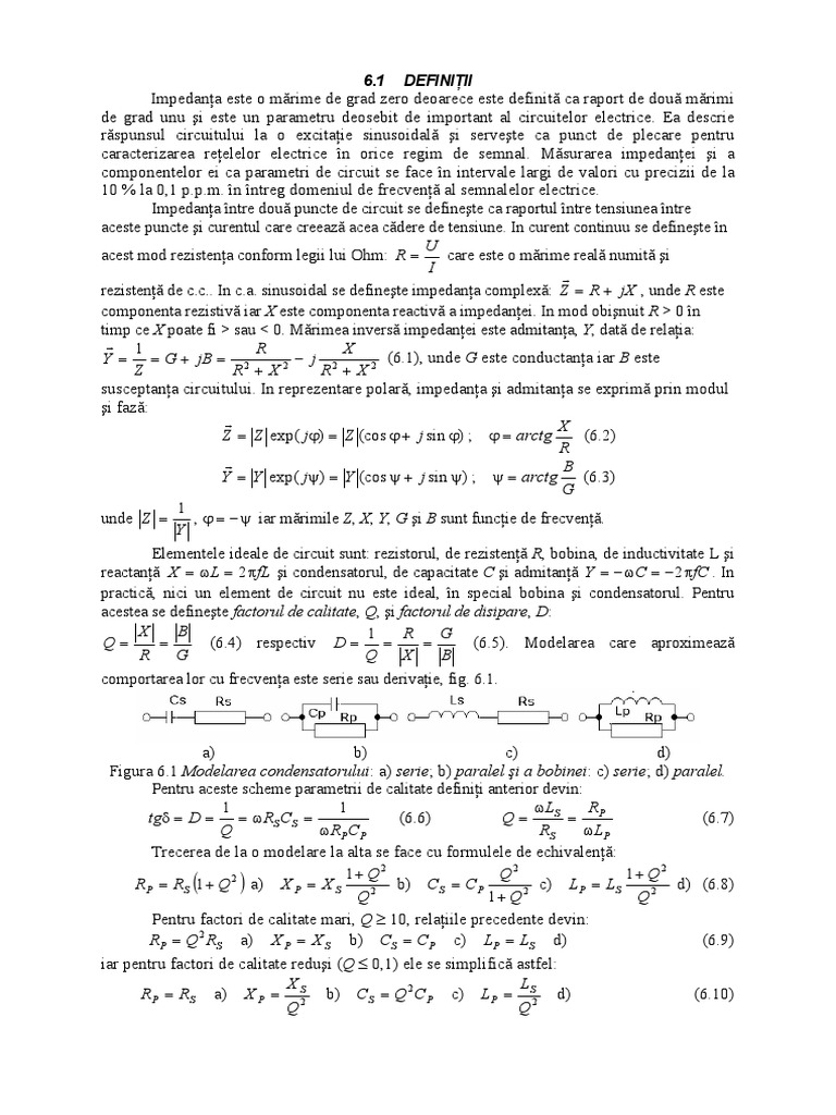 caracterizarea reelelor electrice n orice regim de semnal. Msurarea impedanei i a