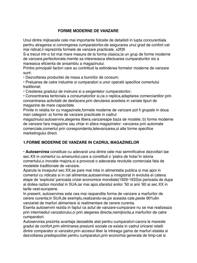 acest gen s-au axat sip e definirea si aplicarea unor forme moderne de vanzare fara
