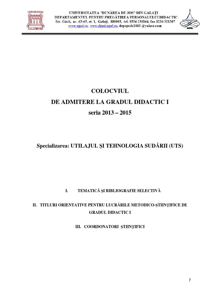 Specializarea: UTILAJUL I TEHNOLOGIA SUDRII (UTS)