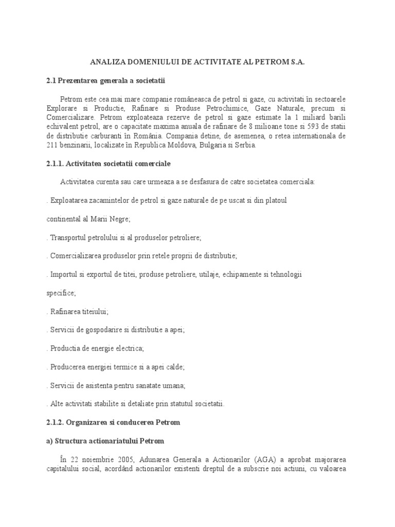 ndeplinirea obiectivelor strategice ale societatii. Datorita aportului de capital, Petrom este