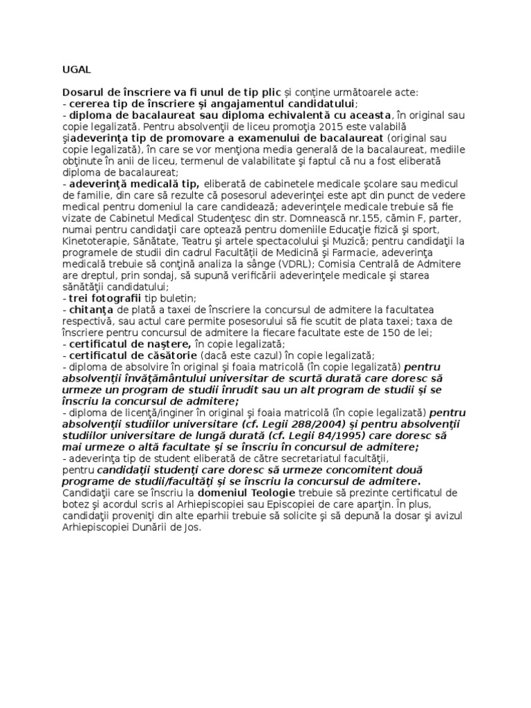 medical trebuie s conin analiza la snge (VDRL); Comisia Central de Admitere