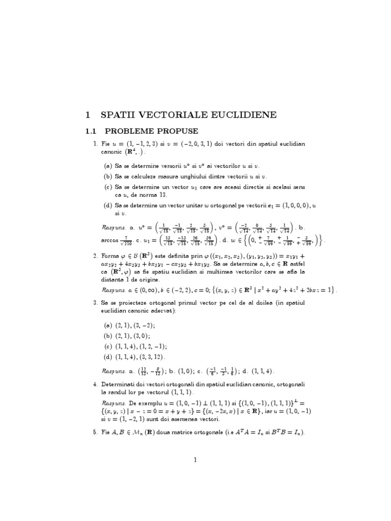 1. Fie u = (1; 1; 2; 3) si v = ( 2; 0; 3; 1) doi vectori din spatiul euclidian