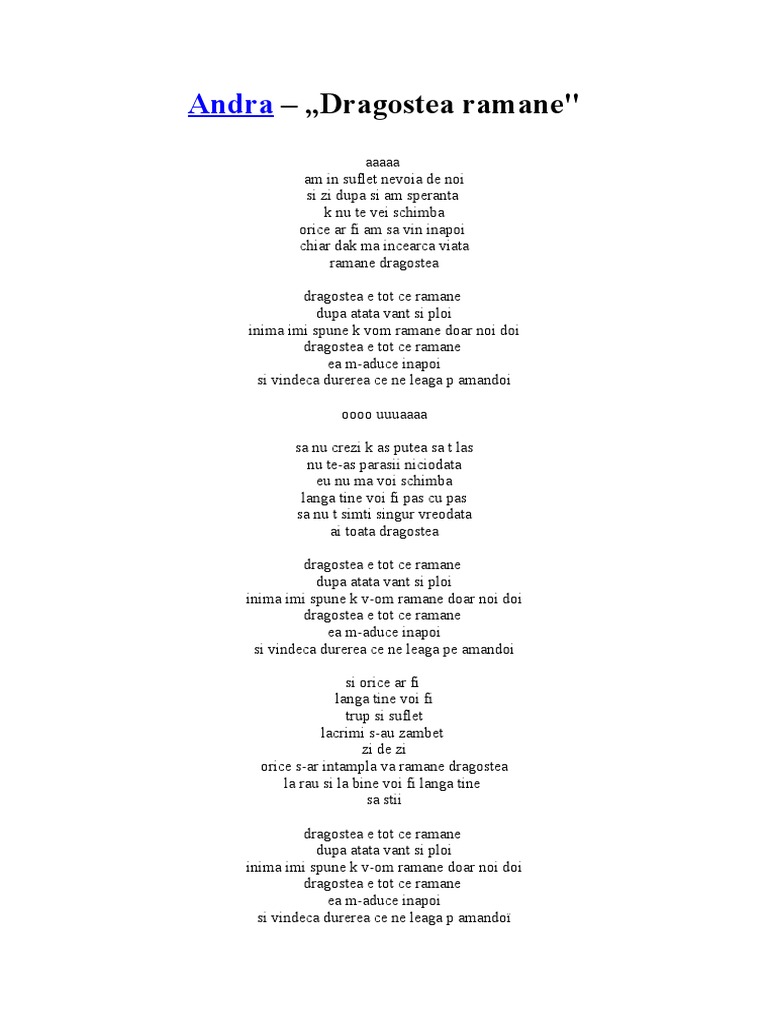 Andra Dragostea ramane"