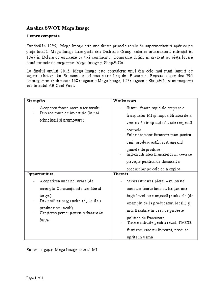 Analiza SWOT Mega Image