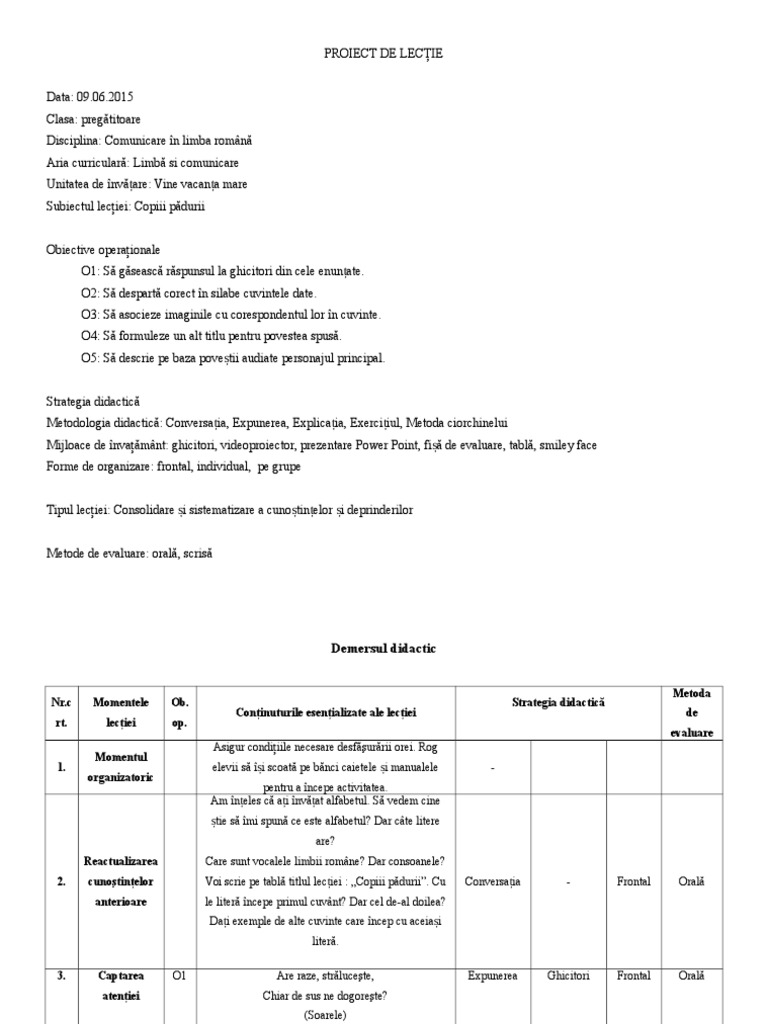 PROIECT DE LECIE