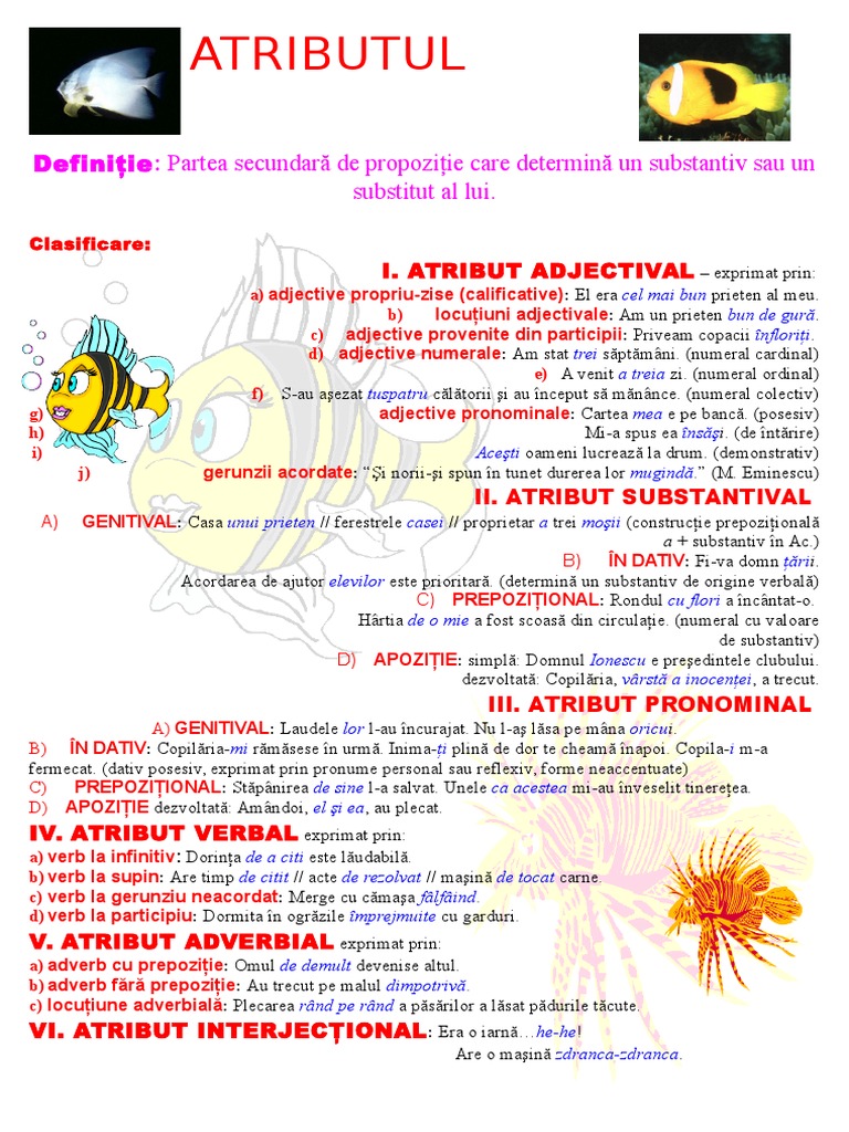I. ATRIBUT ADJECTIVAL exprimat prin: