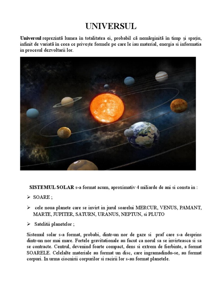 SISTEMUL SOLAR s-a format acum, aproximativ 4 miliarde de ani si consta in :