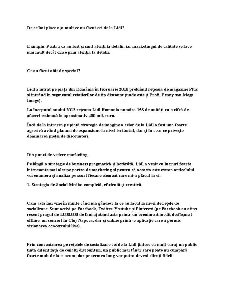 una foarte bun) dar magazinele Lidl nu sunt la ntmplare. Practic sunt acolo unde trebuie s
