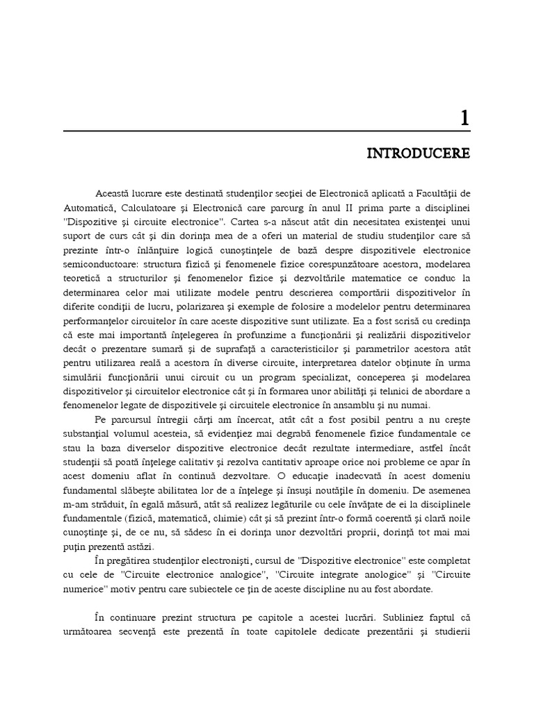 "Dispozitive i circuite electronice". Cartea s-a nscut att din necesitatea existenei unui