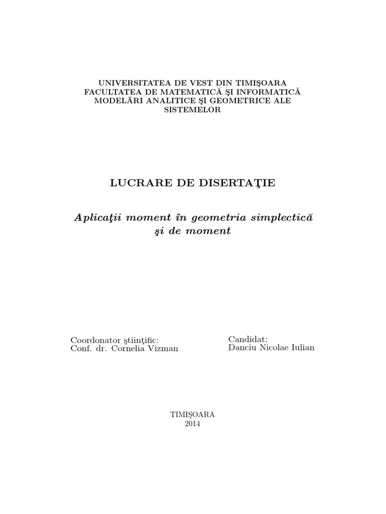 [11] Ionel Mos, An Introduction to Geometric Mechanics, Cluj University