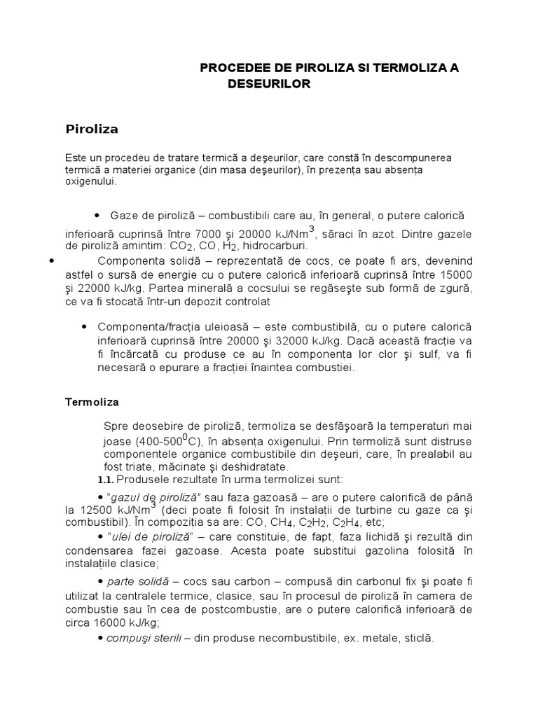 PROCEDEE DE PIROLIZA SI TERMOLIZA A