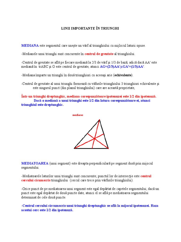 -Medianele unui triunghi sunt concurente n centrul de greutate al triunghiului.