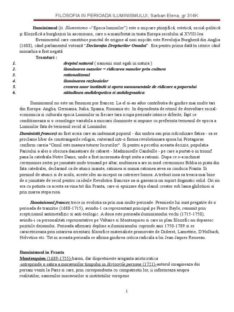 FILOSOFIA IN PERIOADA ILUMINISMULUI, Sarban Elena, gr 314K