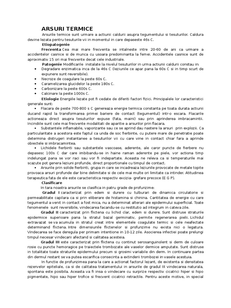 rezultatul unui transfer de caldura asupra tesuturilor. Este evident ca gravitatea leziunilor ce se vor