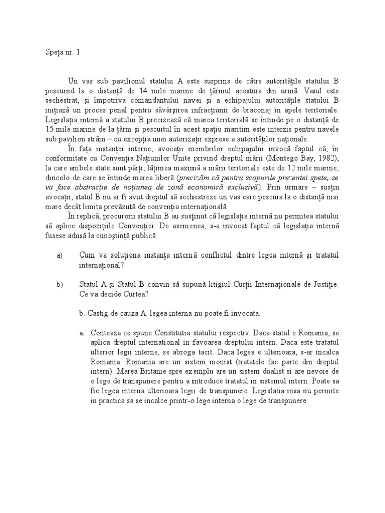 Legislaia intern a statului B precizeaz c marea teritorial se ntinde pe o distan de