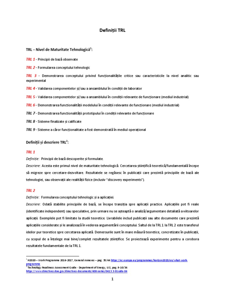 funcionalitatea i performanele ateptate. TRL 4-6 reprezint puntea dintre cercetarea tiinific i aplicaia