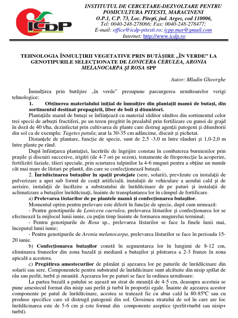 TEHNOLOGIA NMULIRII VEGETATIVE PRIN BUTIRE N VERDE LA