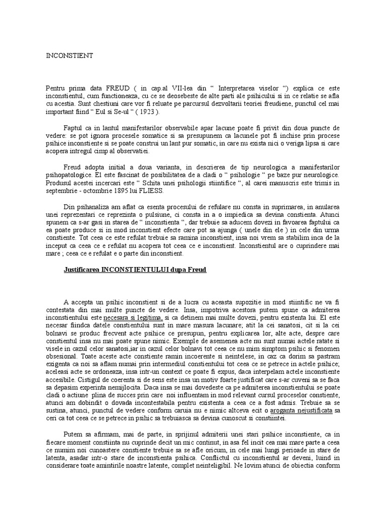 cu o constiinta inconstienta. In al doilea rinnd, analiza indica faptul ca procesele psihice latente