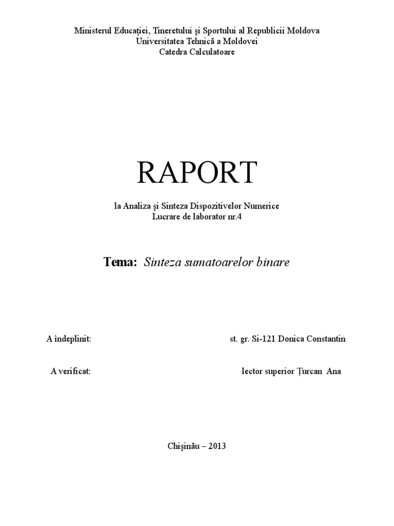 practice de sinteza a sumatoarului complet si a sumatorului binar cu transport anticipat si s-au