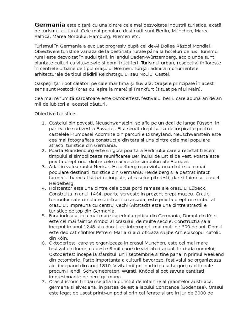 Germania este o ar cu una dintre cele mai dezvoltate industrii turistice, axat