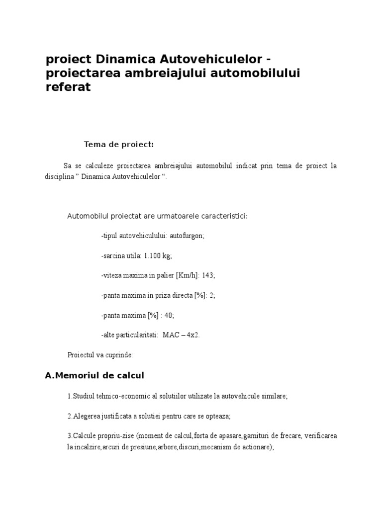 pentru proiectarea autovehiculului primit prin tema de proiect.