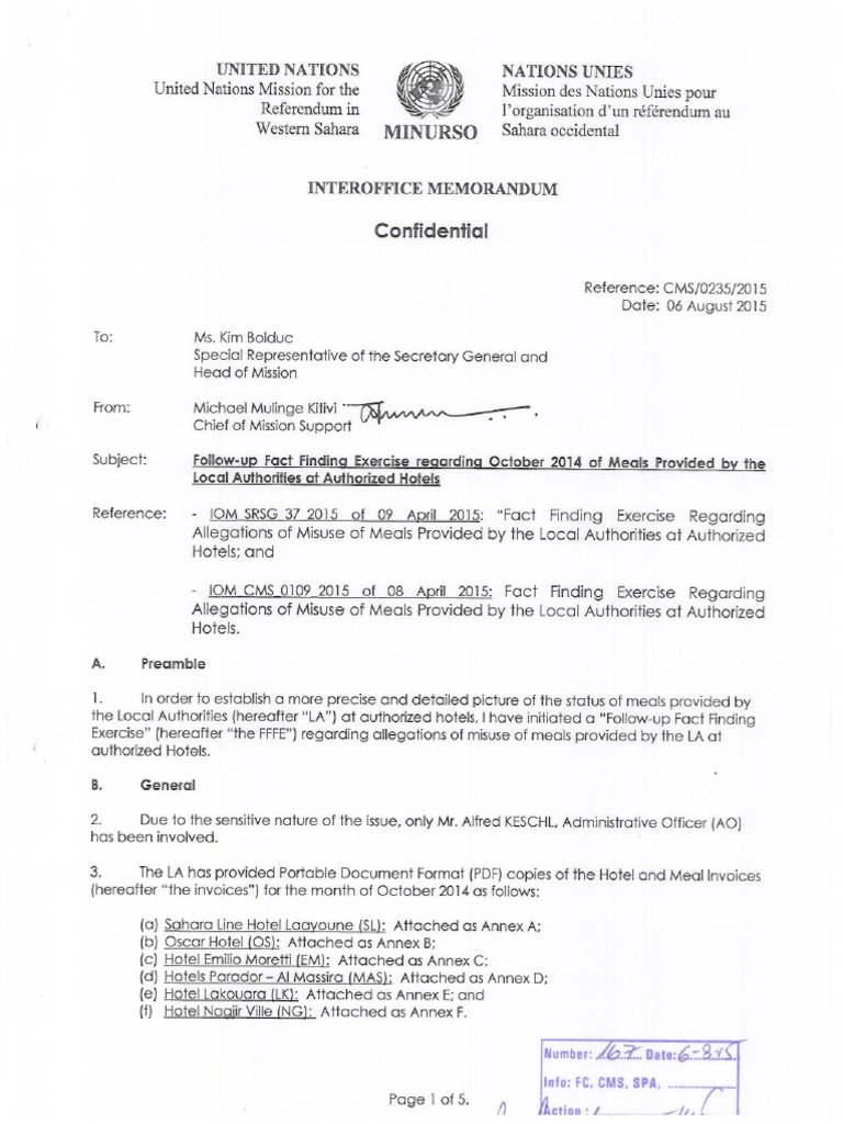 On W. Sahara, ICP Has 2d Leaked Memo of UN Hotel Fraud, UN To Search & Toss Files