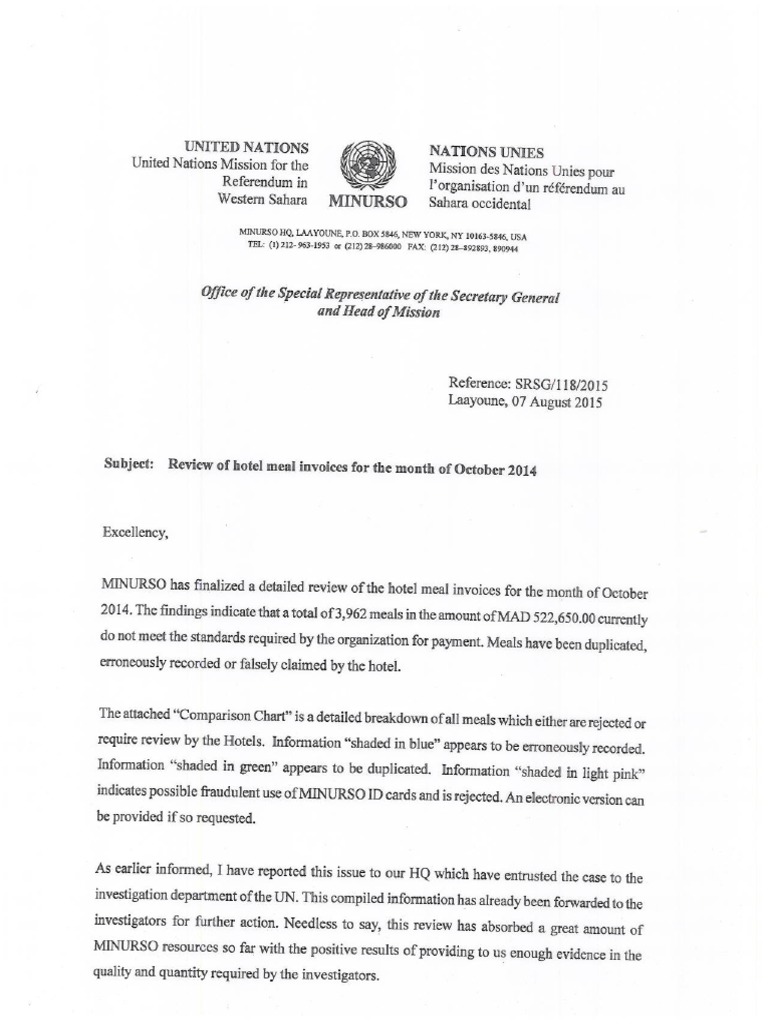 But here is the memo, from the UN's Kim Bolduc to Morocco's Minister on MINURSO Hamid Barez, here.
