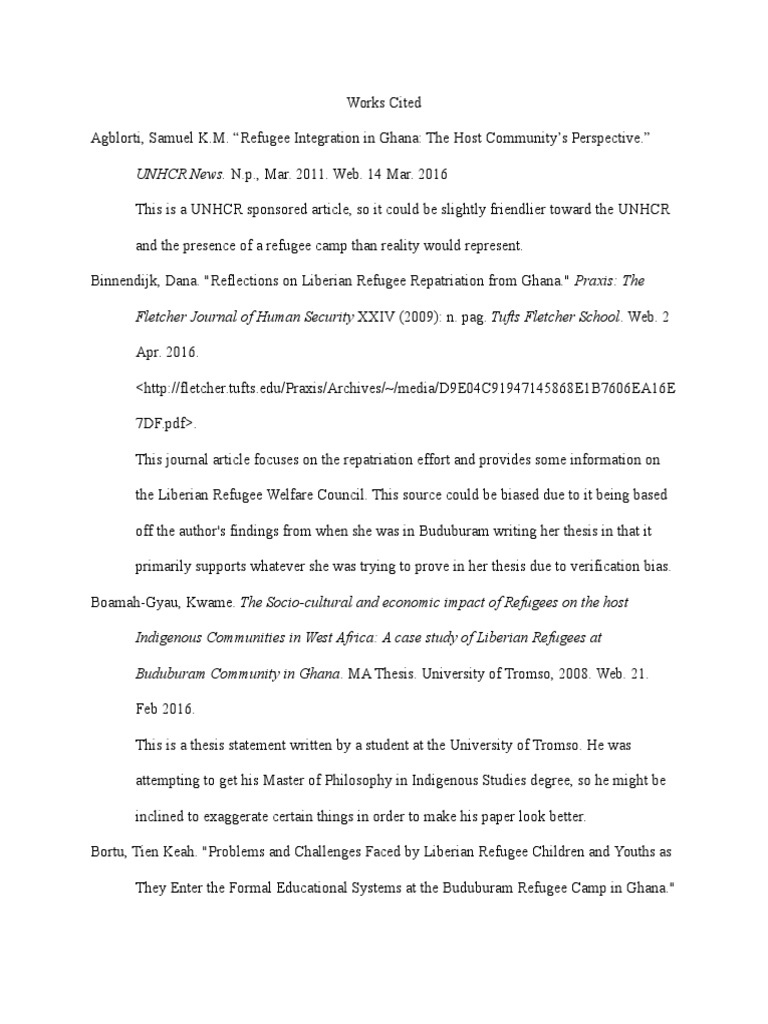 off the author's findings from when she was in Buduburam writing her thesis in that it