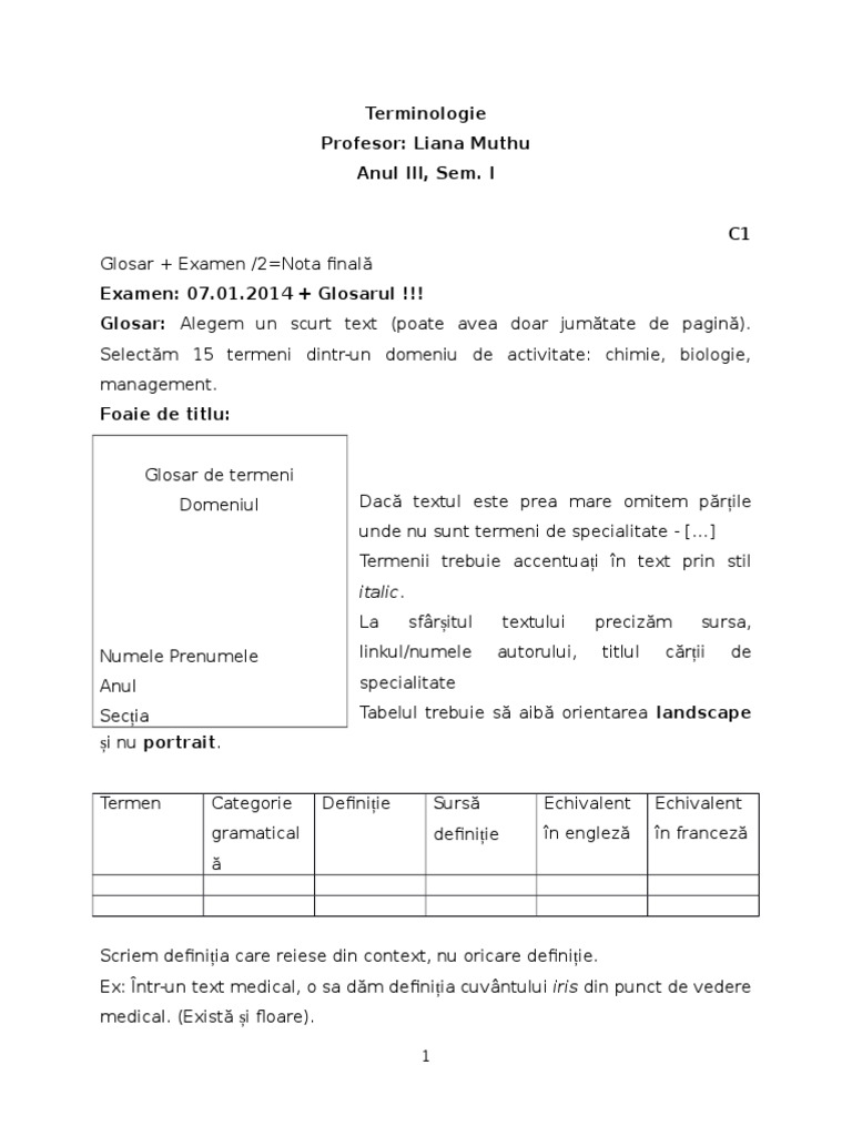 Examen: 07.01.2014 + Glosarul !!!