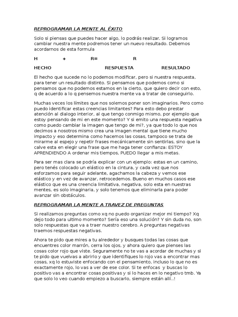 REPROGRAMAR LA MENTE A TRAVES DE LA AUTOSUJESTION