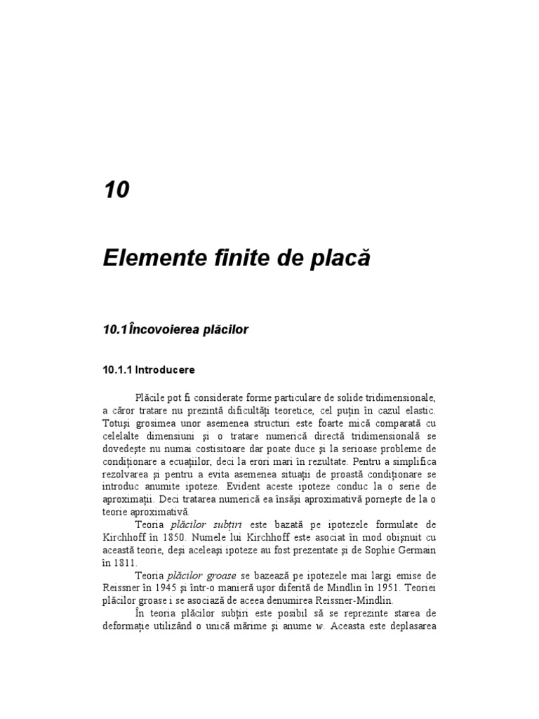 - se consideră o teorie de placă incluzând deformaţiile din forfecare;