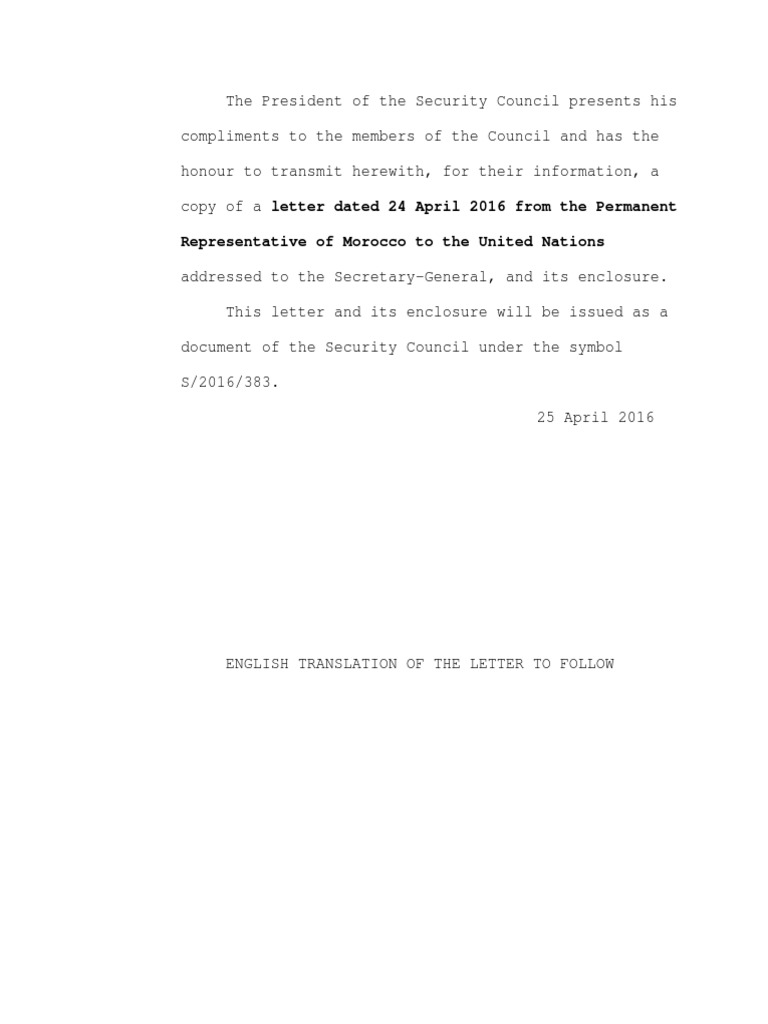 ENGLISH TRANSLATION OF THE LETTER TO FOLLOW