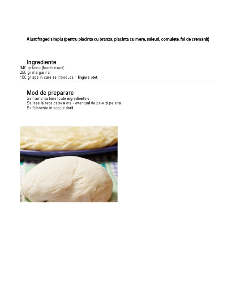 Aluat fraged simplu (pentru placinta cu branza, placinta cu mere, saleuri, cornulete, foi de cremsnit)