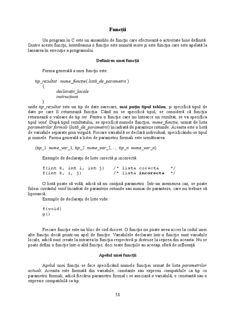 tipul void. Dup tipul rezultatului, se specific numele funciei, nume_funcie, urmat de lista