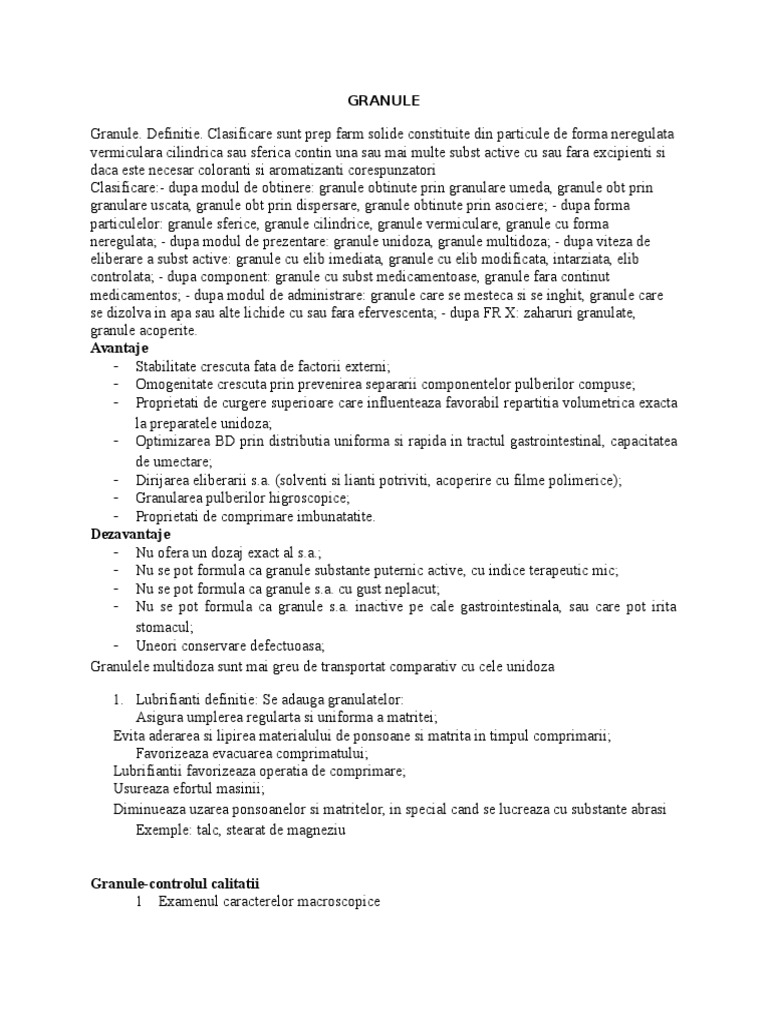 Granule. Definitie. Clasificare sunt prep farm solide constituite din particule de forma neregulata