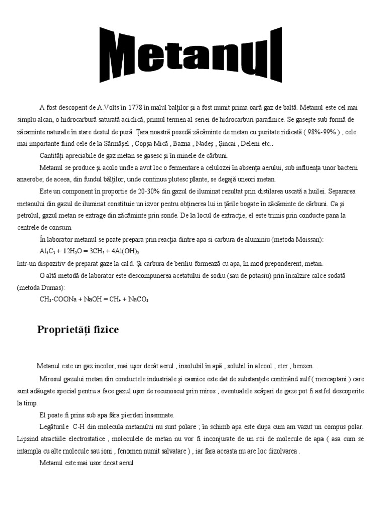 zăcaminte naturale în stare destul de pură. Ţara noastră posedă zăcăminte de metan cu puritate ridicată ( 98%-99% ) , cele