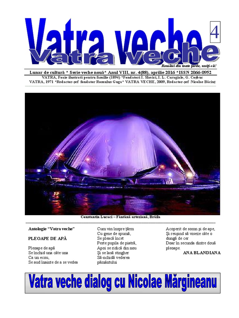 Lunar de cultur * Serie veche nou* Anul VIII, nr. 4(88), aprilie 2016 *ISSN 2066-0952